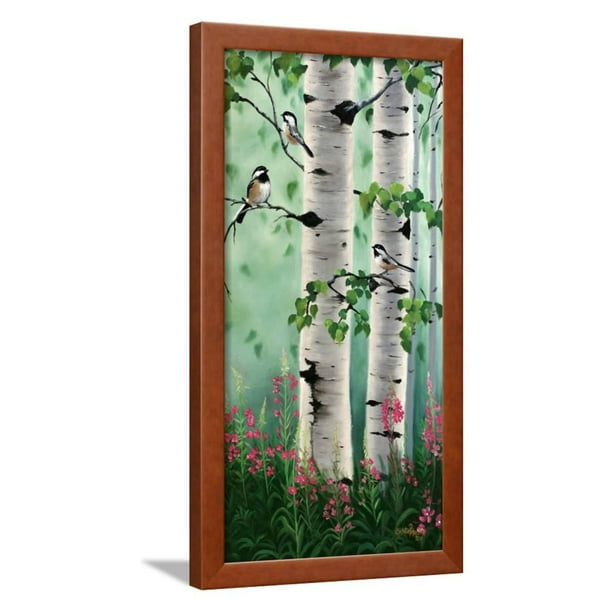 Chickadees In The Birch Trees Framed Print Wall Art By Julie