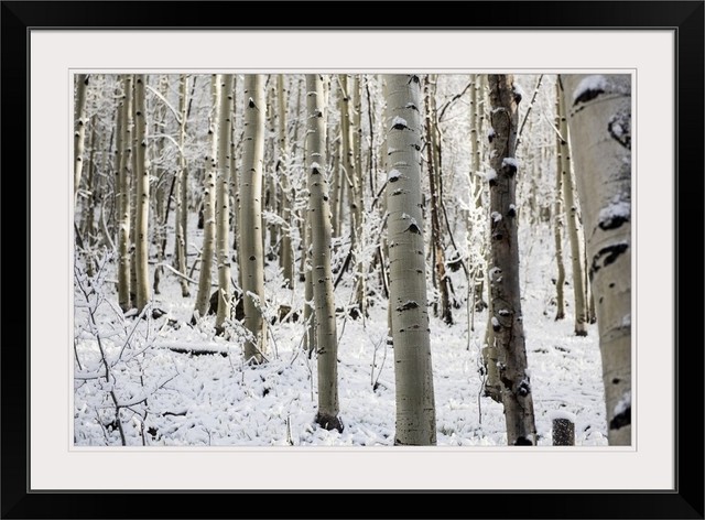 Snowy Birch Trees In A Forest Aspen Colorado Black Framed Art