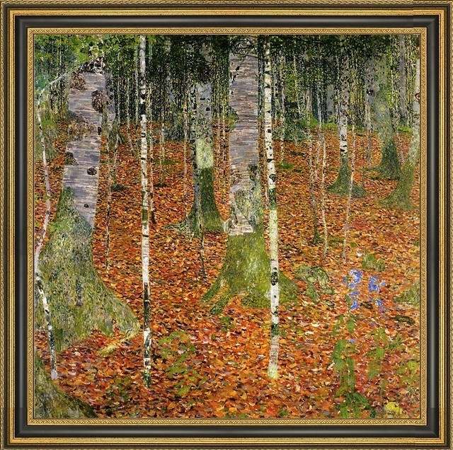 Gustav Klimt Farmhouse With Birch Trees Framed Canvas Print