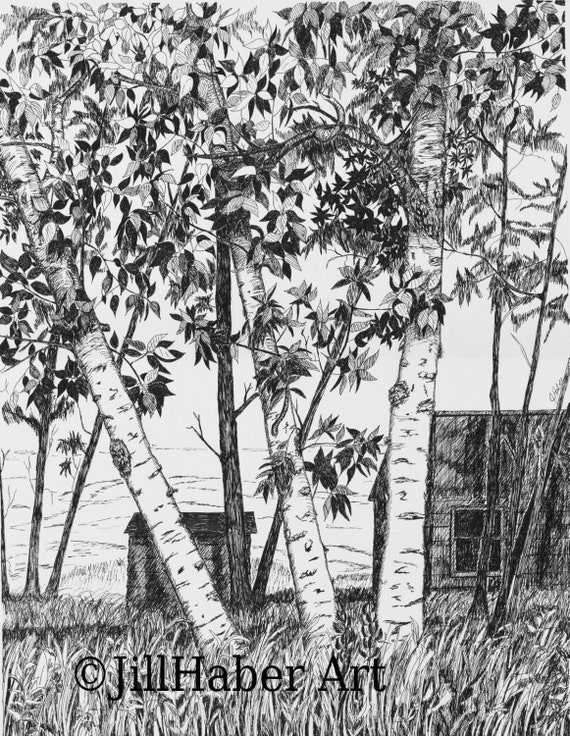 Pen And Ink Drawing Birch Tree Print Pen And Ink Prints 8 X Etsy