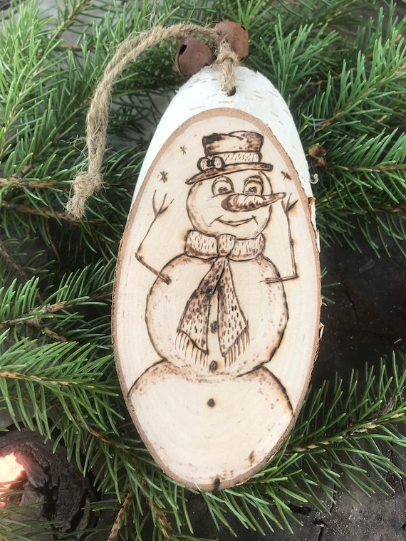 Snowman Ornament Personalized Birch Tree Wood Christmas Decor Etsy