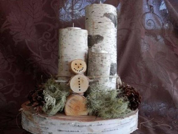 Christmas Birch Log Snowman Tealight Centerpiece Wholesale Etsy