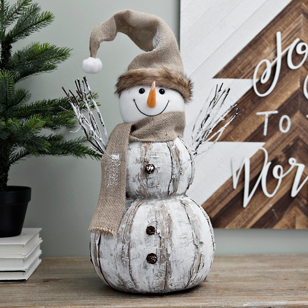 Birch Snowman With Burlap Hat And Scarf Kirklands