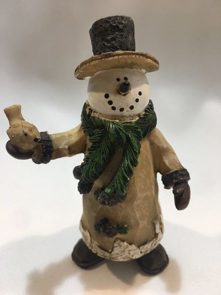 Nature Snowman With Mittens And Pine Tree Scarf Holding Bird