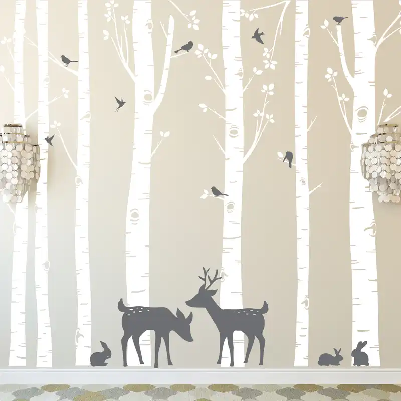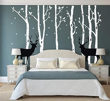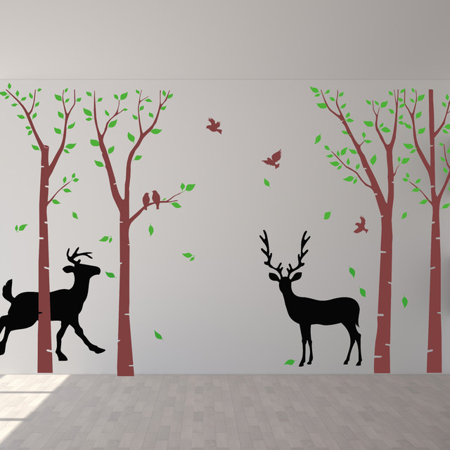 Huge Size Trees Wall Stickers Set Of 7 Birch Trees With Deer And