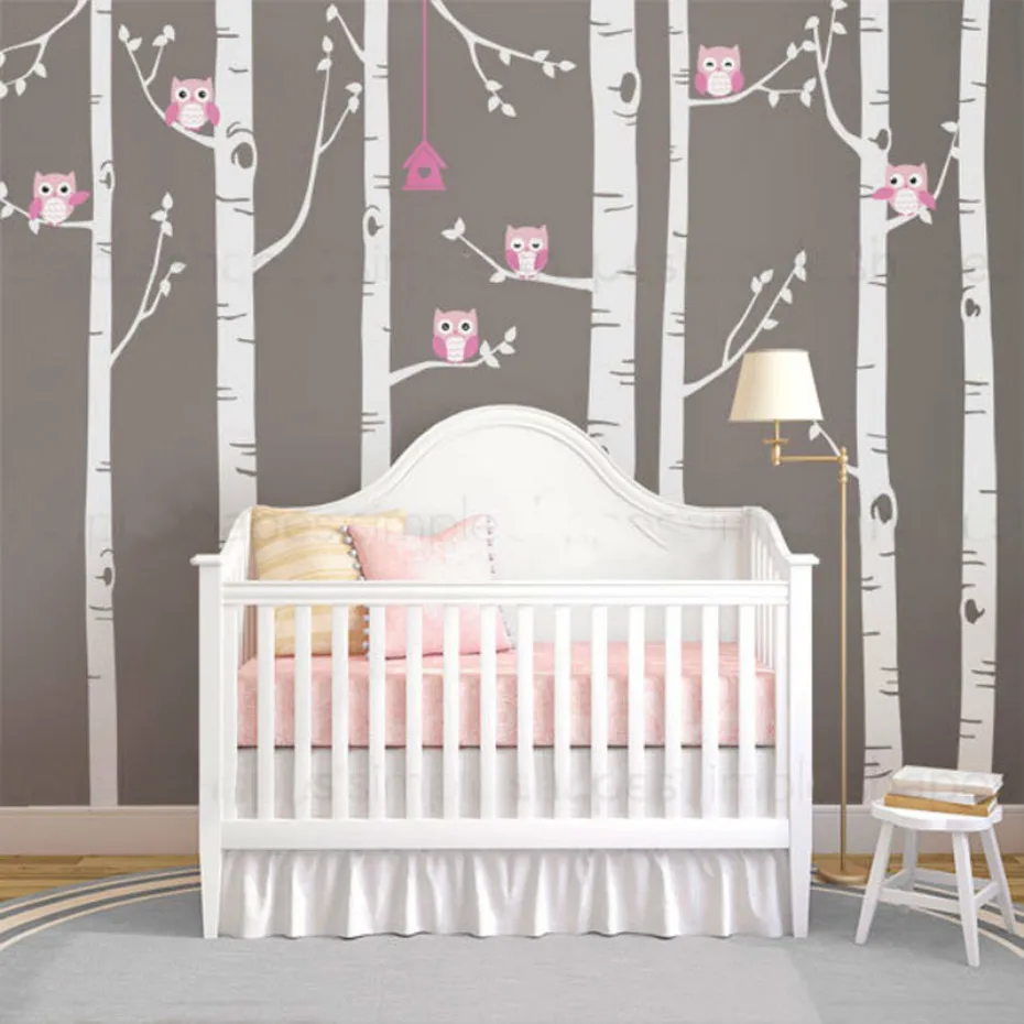 Birch Trees And Owls Wall Decal Sticker Nursery Kids Forest Trees
