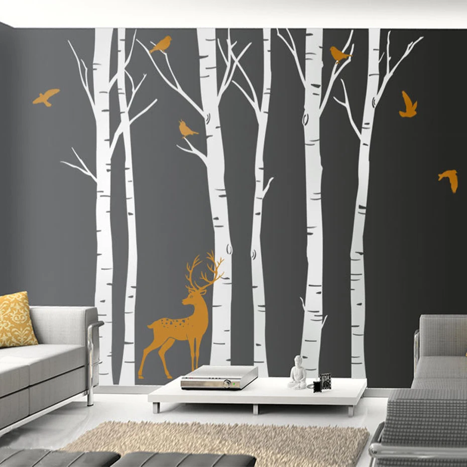 Birch Tree Vinyl Wall Sticker Wall Decal Nature Birds Deer In