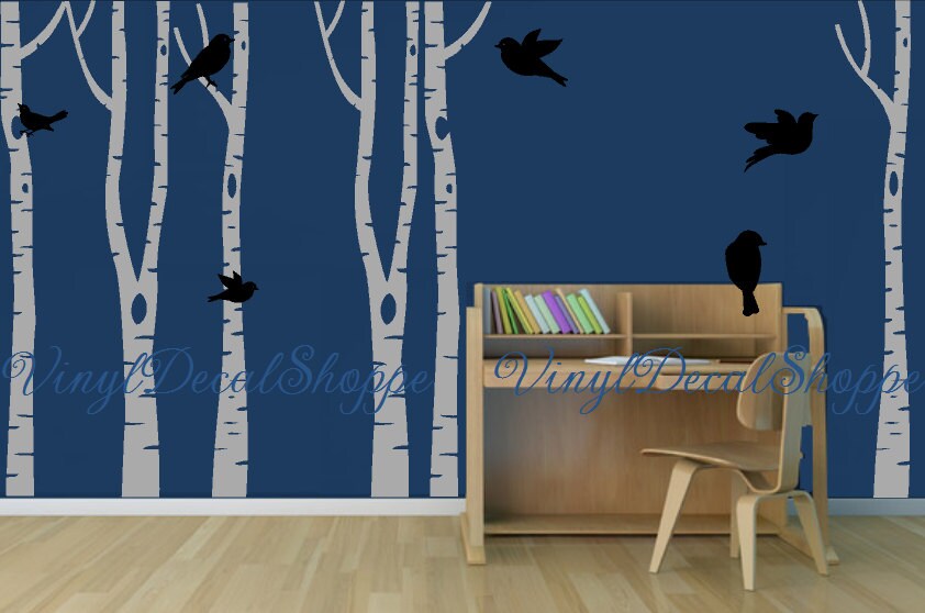 Birch Tree Forest Wall Decal Birch Trees Birds Wall Decal Vinyl