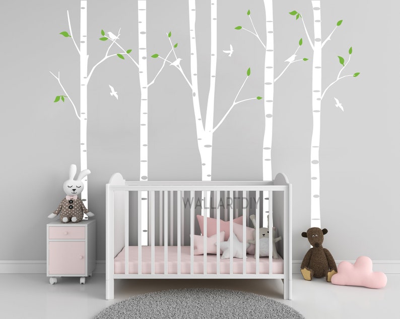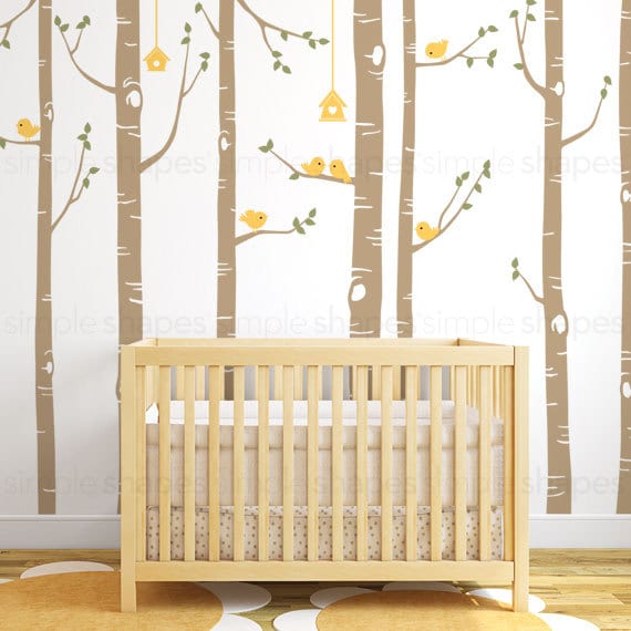 6 Wall Decals Nursery Trees Birch Woodland Forest