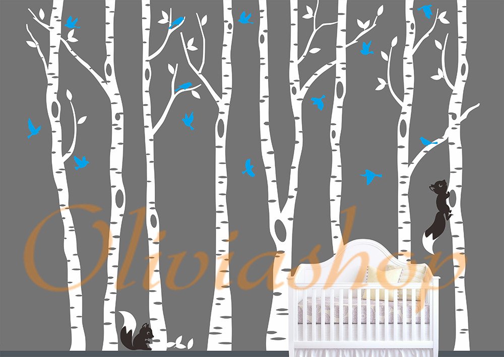 Tree Wall Decal Fox Sticker Nursery Birch Trees Mural Decor Art
