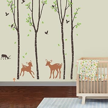 Huge Size Trees Wall Stickers Set Of 7 Birch Trees With Deer And