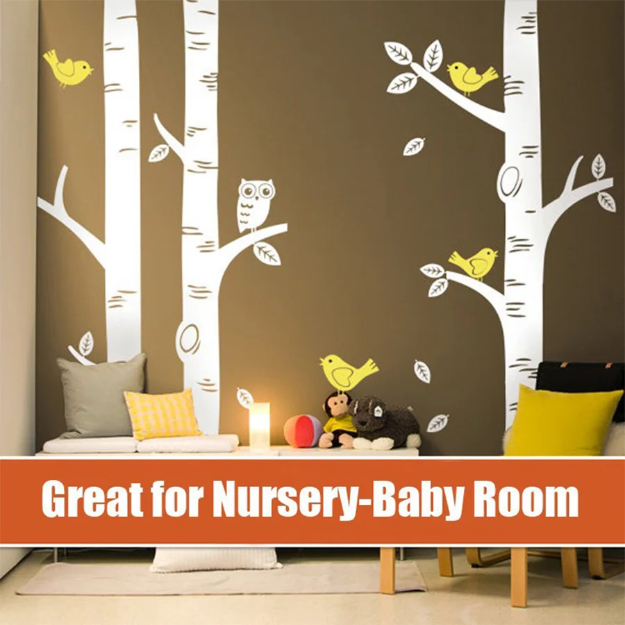 Big Birch Tree Wall Decals Cute Owls Nature Wall Sticker Nursery