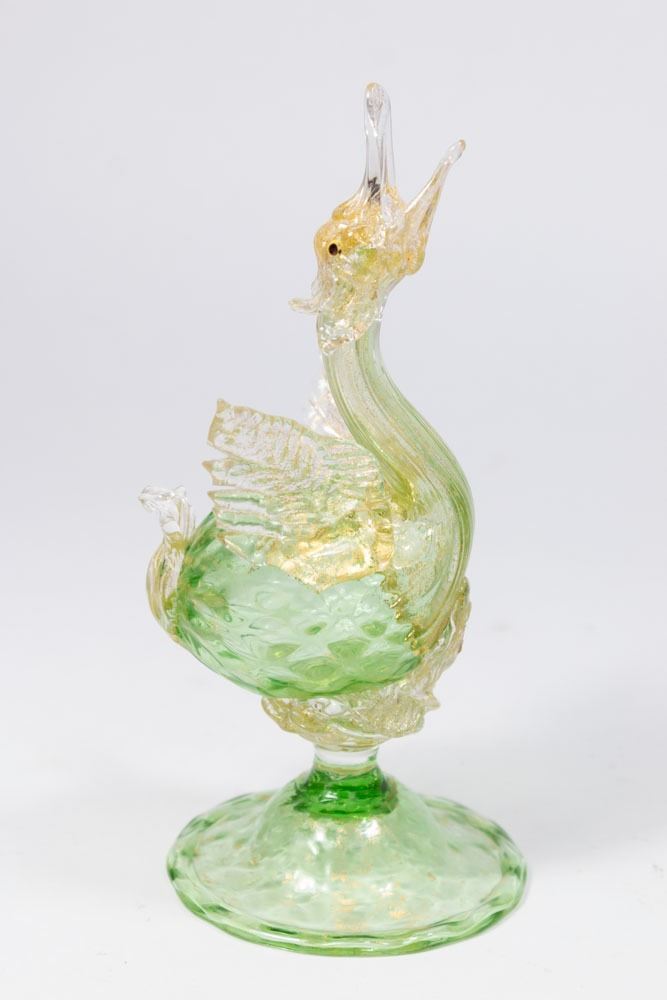 Venetian Gilt Green Glass Exotic Bird Bud Vase