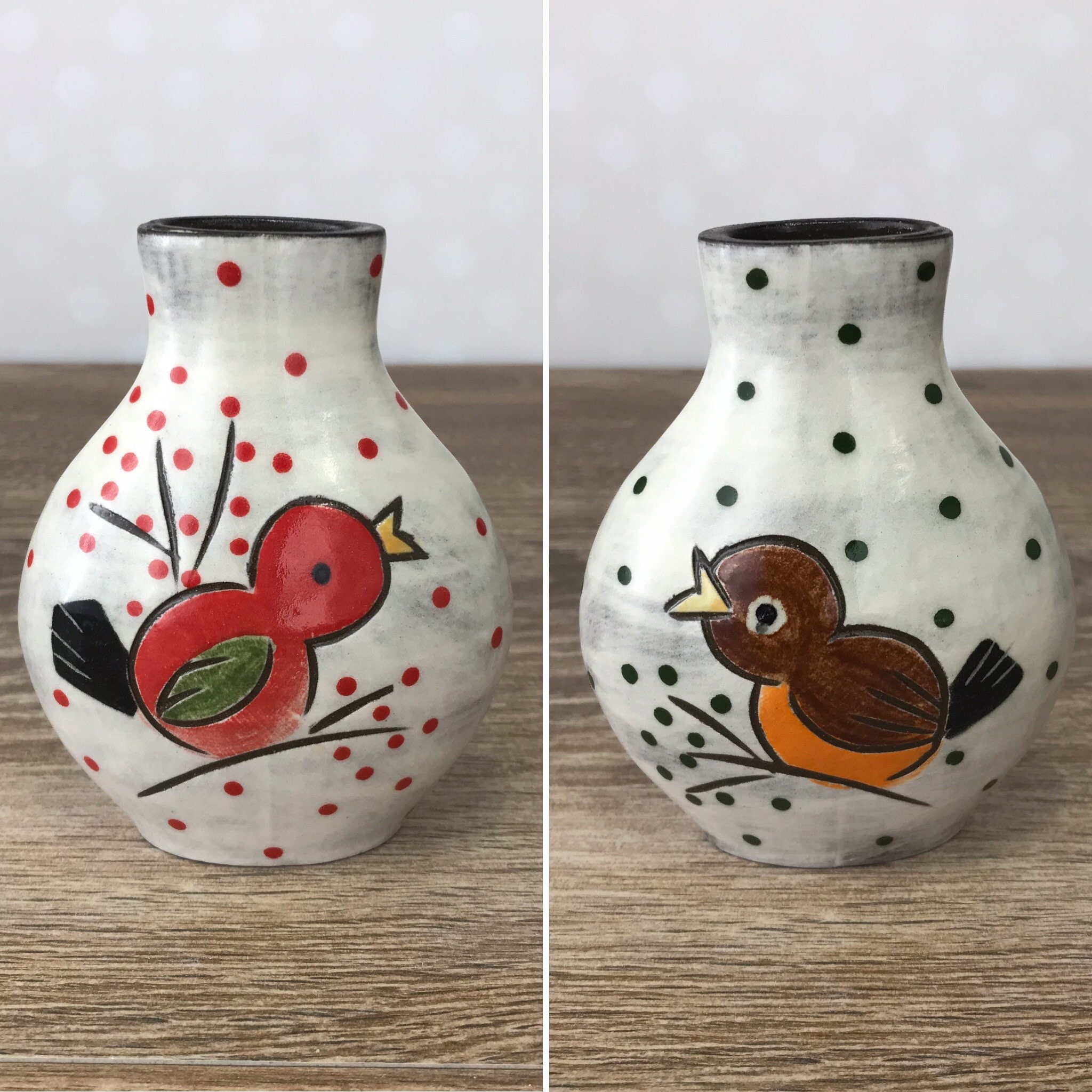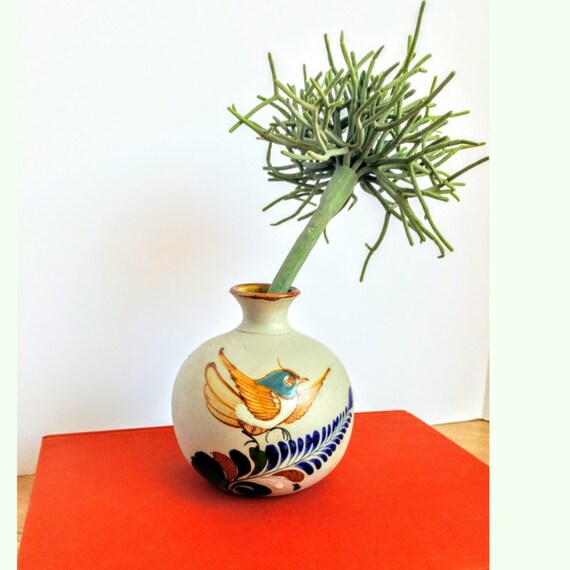 Mexican Tonala Hand Painted Bird Bud Vase Etsy