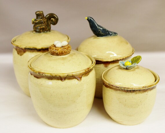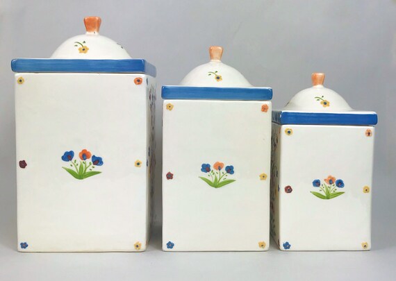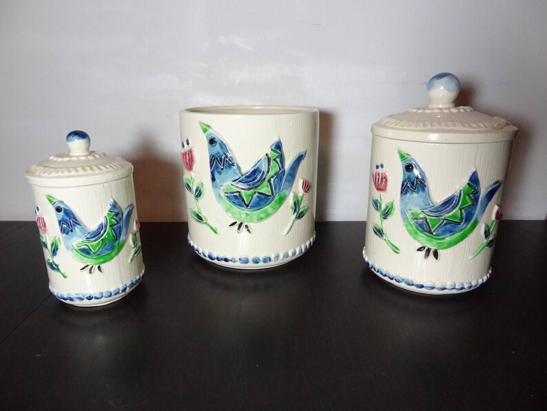 Blue Bird On Nest Kitchen Canister Set Compact Ceramic Etsy