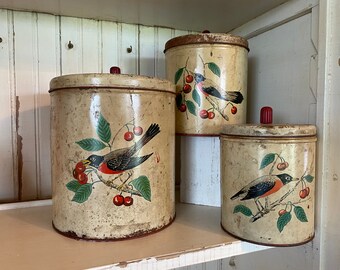 Retro Aluminum Red Bird Maid Of Honor Canister Set 25894010