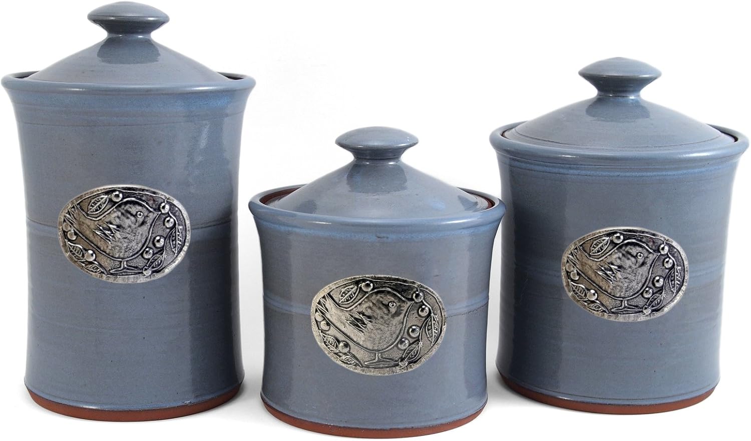 Amazon Com Oregon Stoneware Studio Bird 3 Piece Canister Set Light Blue Kitchen Dining