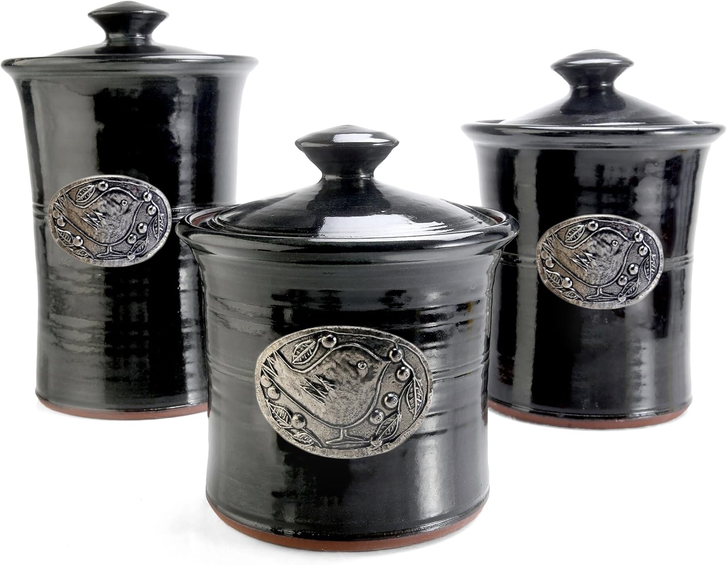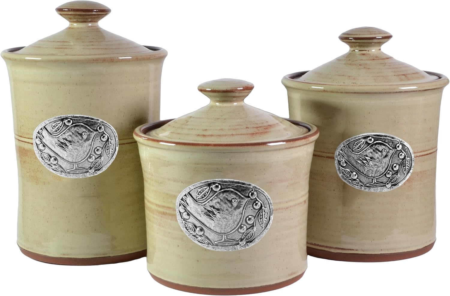 Amazon Com Oregon Stoneware Studio Bird 3 Piece Canister Set Latte Kitchen Dining