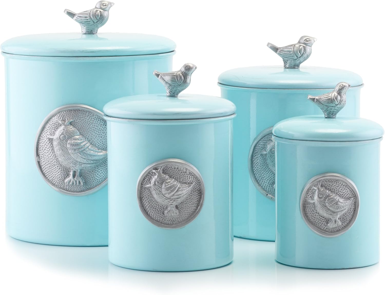4 Piece Lauren Bluebird Canister Set W Bird Medallion Knob Fresh Seal Covers 4 Qt 2 Qt 1 Qt 1 Qt Walmart Com Walmart Com