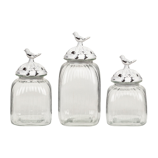 Glass Bird Canister Set Of 3 Glass Birds Canister Sets Canister Crafts