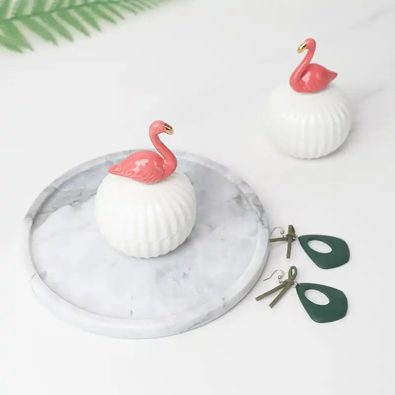 Nordic Golden Ceramic Animal Jewelry Storage Box Flamingo Storage