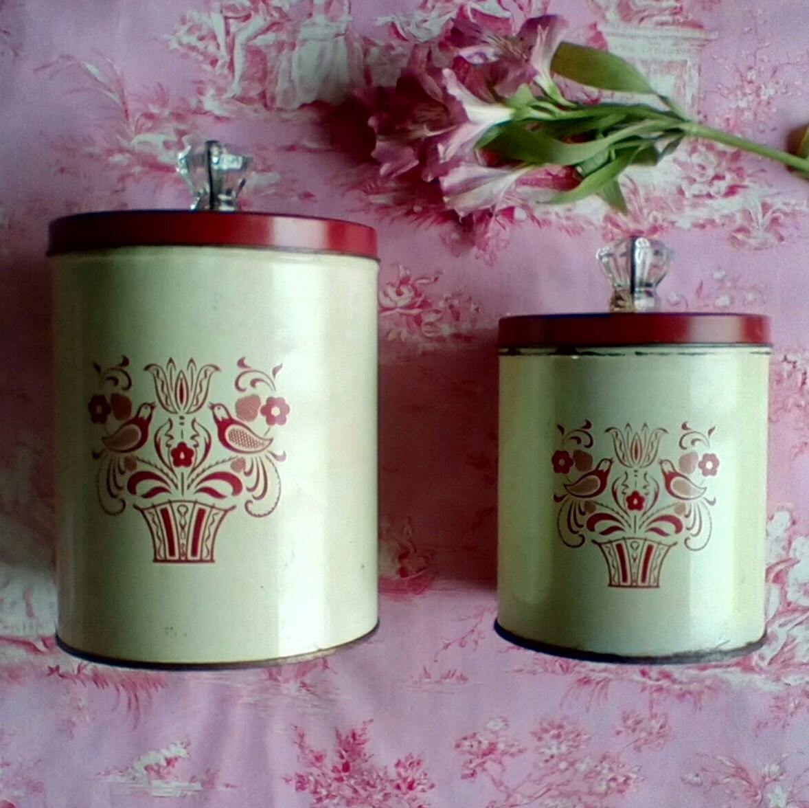 Vintage Canisters Tins With Pennsylvania Dutch Bird Motif And Etsy