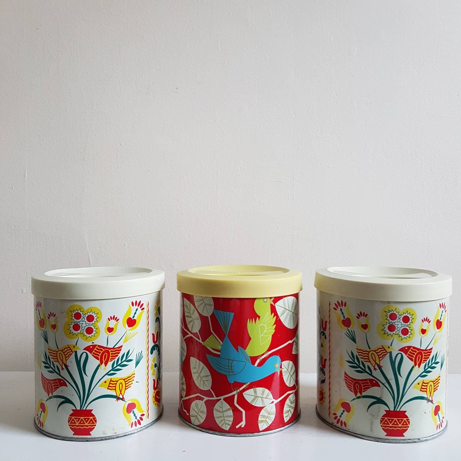 Bird Cannister Set Of 3 Retro Tin Kitchen Storage Procter Etsy