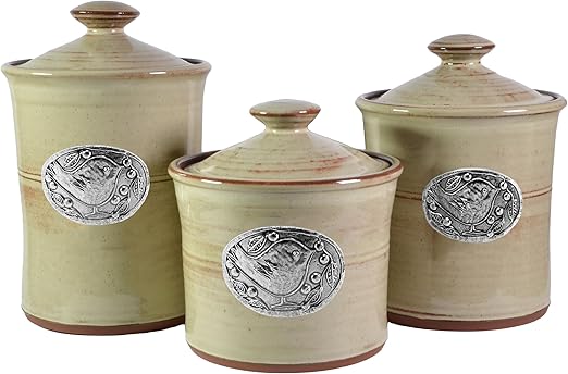 Amazon Com Oregon Stoneware Studio Bird 3 Piece Canister Set