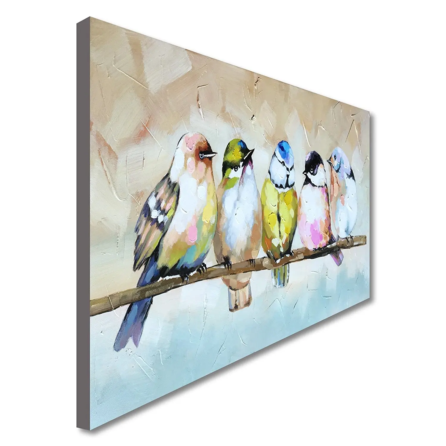 Funny Hand Painted Canvas Oil Painting Colorful Birds Canvas Art