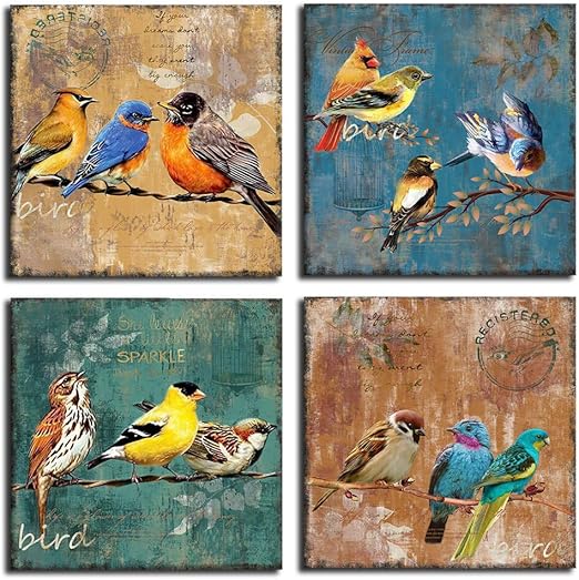 Bird Canvas Wall Art For Bedroom 14x14 4 Pieces Rustic Wall Decor