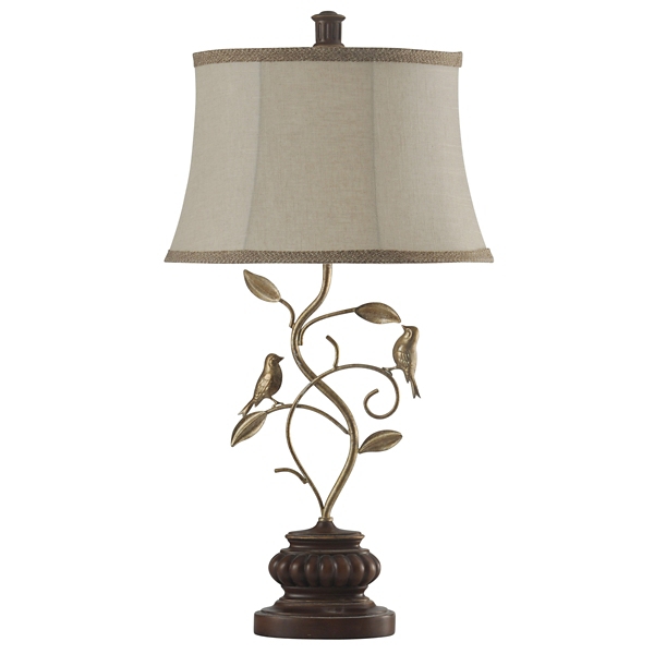 David Hunt Designed Bird Table Lamp With Taupe Silk Shade