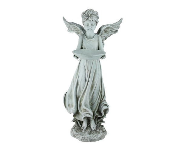 Northlight 16 5 Inch Angel Bird Feeder Statue In Grey Bed Bath