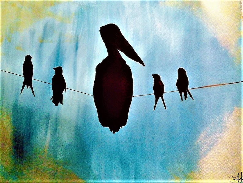 Abstract Bird Painting Original Acrylic Painting Birds On A Wire Bird Art Large Wall Art 24 X 48 Colorfu Etsy Painting Abstract Painting Abstract Painting