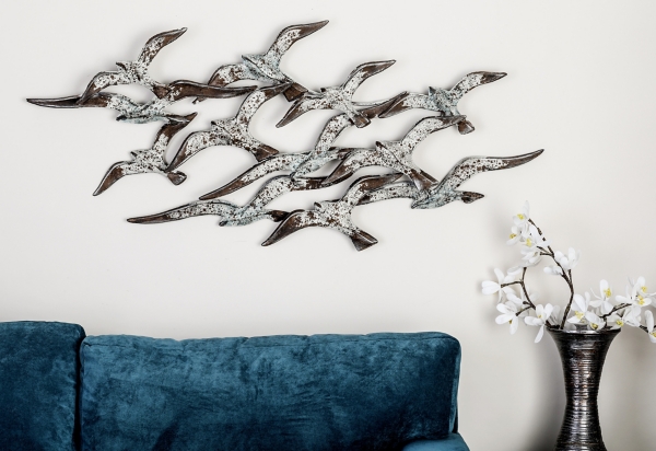 Set Of 2 Metal Flying Seagulls Wall Art Nautical Hanging Home