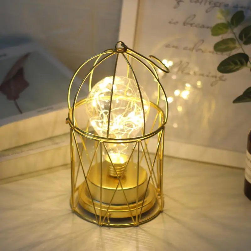 Vintage Wrought Iron Led Table Lamp Warm White Birdcage Design