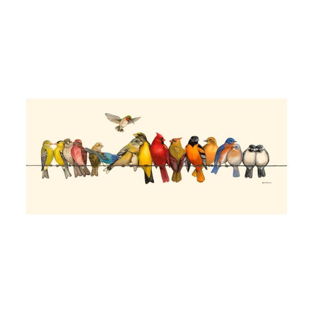 Bird Menagerie I Colorful Birds On A Wire Artwork Print Wall Art
