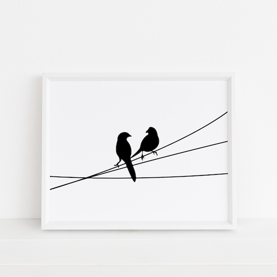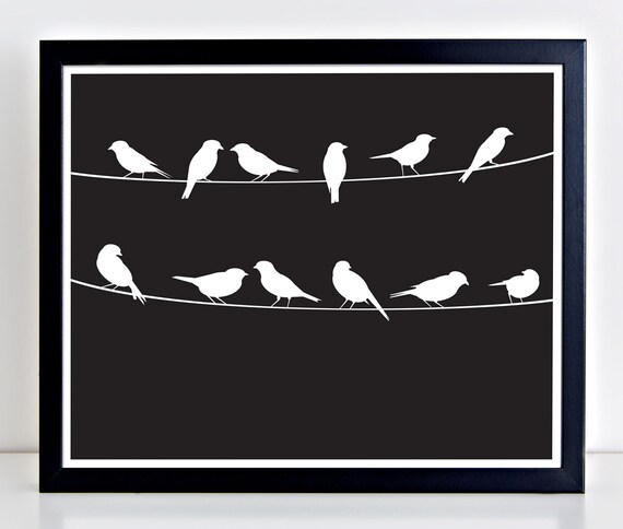 Bird Art White And Black Print Birds On A Wire Print Modern Etsy