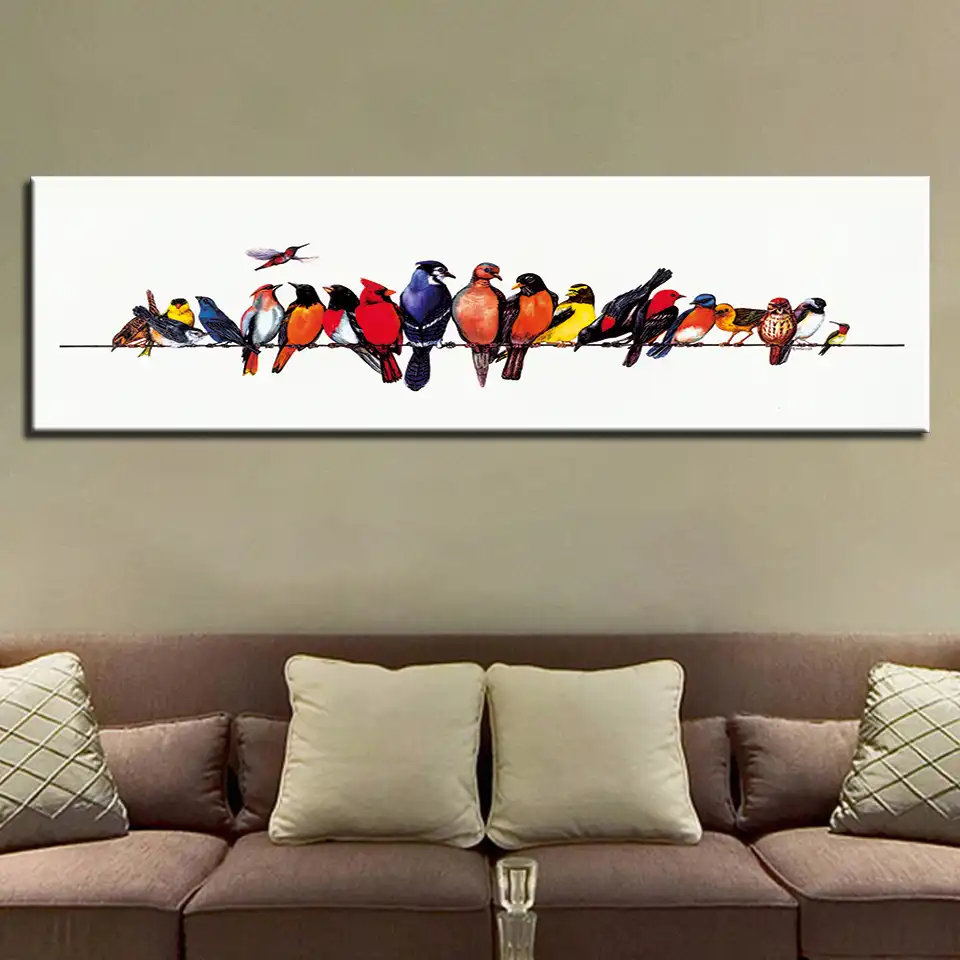 Canvas Hd Print Banner Painting Wall Art 1 Piece Animals Birds On
