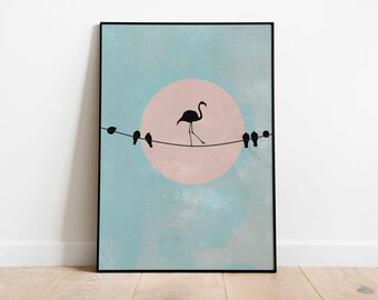 Birds On A Wire Minimalist Watercolor Art Canvas Poster Painting