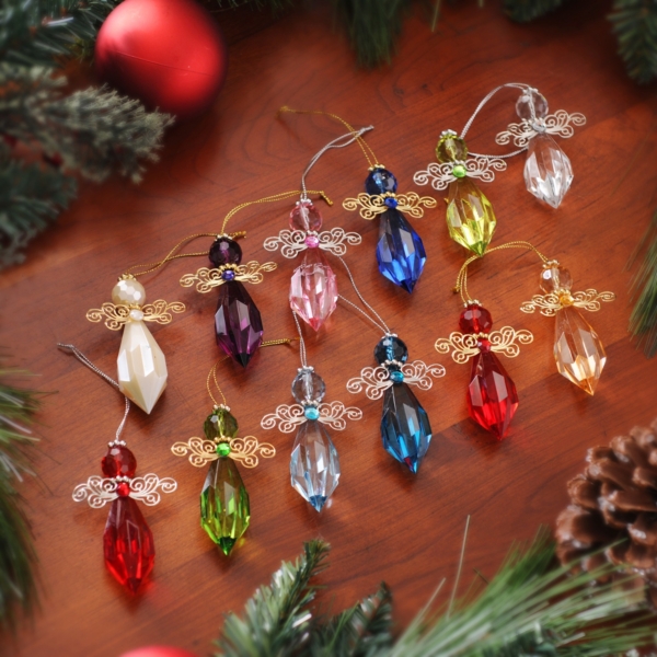 Pack Of 12 Glass Birthstone January December Angel Christmas