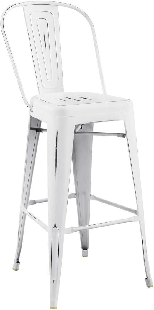 Set Of 4 White Metal Industrial Bar Stool Breakfast Kitchen Bistro