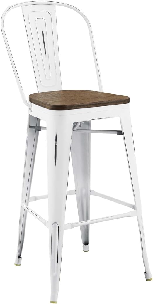 White Counter Height Mediterranean Bistro Bar Stool 29 H E