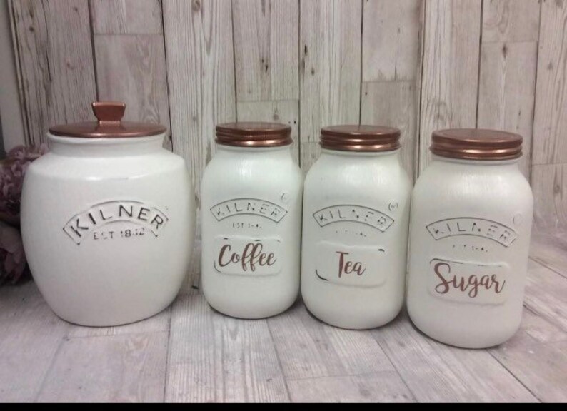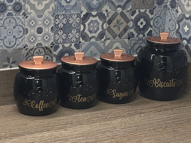 Black With Rose Gold Lids Tea Coffee Sugar Biscuit Cookie Jar Etsy