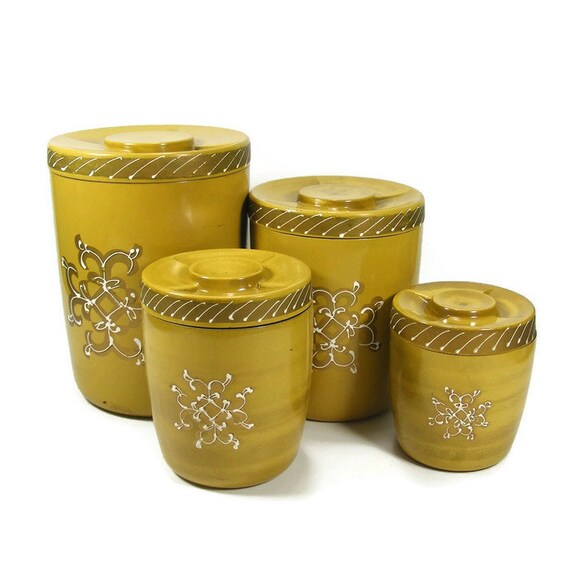 Vintage Canister Set Of 4 Gold And Black Canisters Nesting Etsy