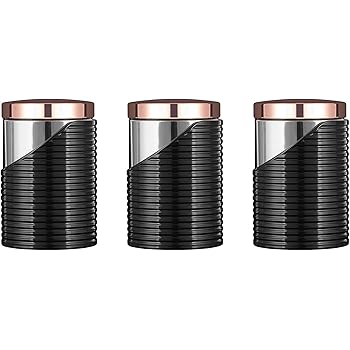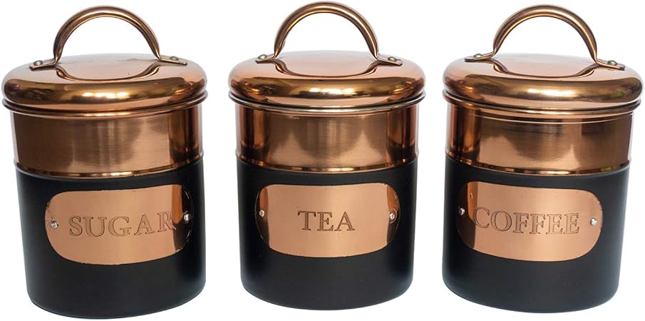 Kauri Design 3 Piece Matte Black Food Canister Set With Copper