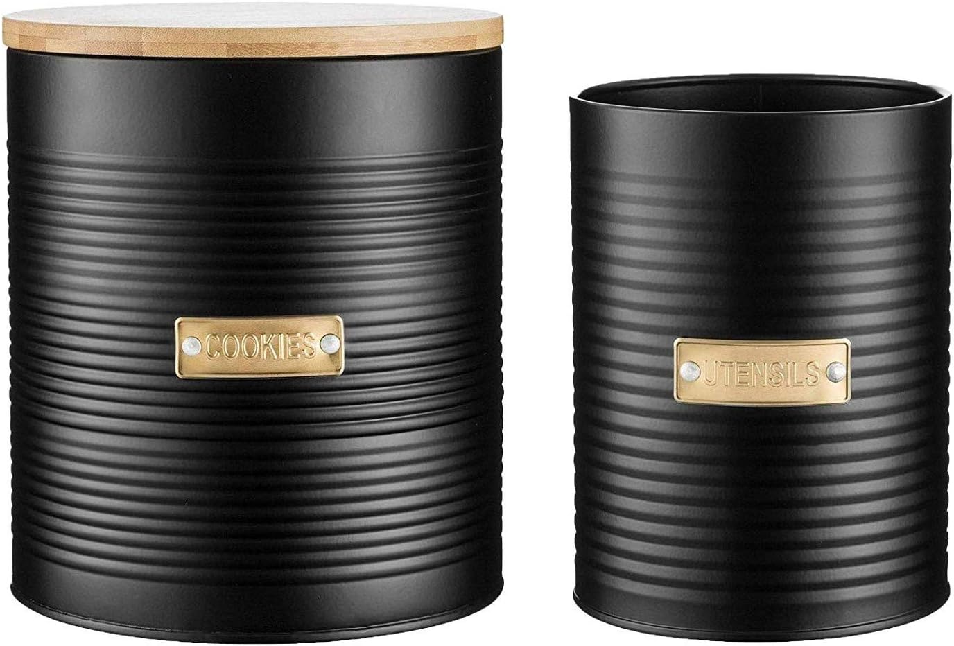 Tripar Set Of 2 Black Gold Metal Canisters Kitchen Canisters