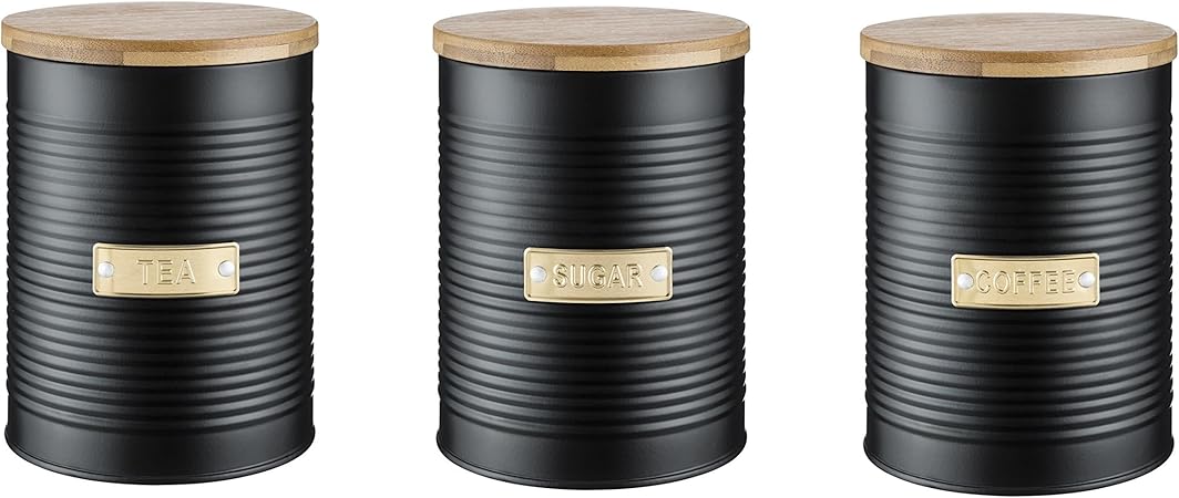 Typhoon Living Otto Black Set Of Tea Coffee Sugar Storage Jar