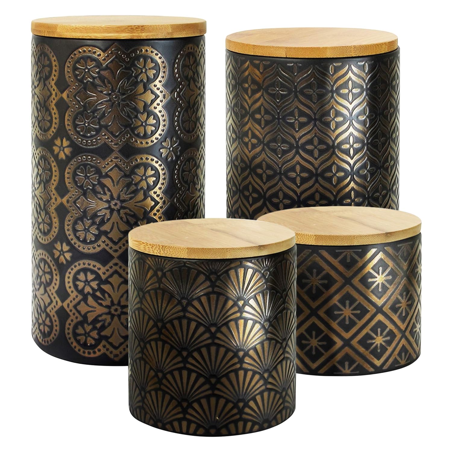 4 Piece Ceramic Kitchen Canister Set Black Gold Storage