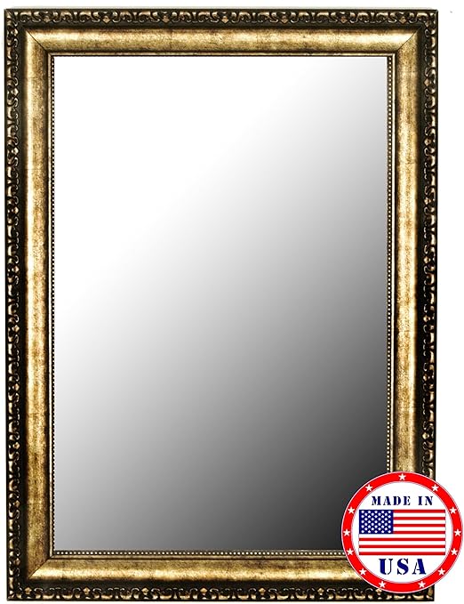 Newton Series Framed Mirror Style 106b Black Gold Aged Wood