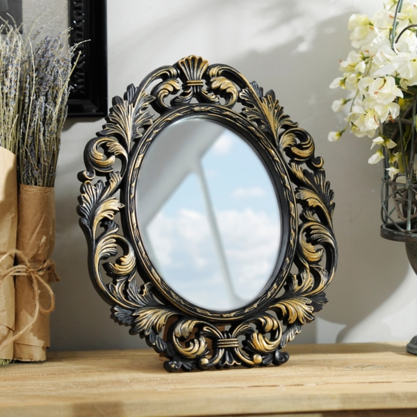 Ornate Black Gold Oval Framed Mirror 13x15 Kirklands